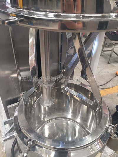 行星分散混合機有高速、低速、活動刮板作攪拌、剪切、刮壁、溶解用。低速運轉(zhuǎn)的攪拌錨使物料在密 閉容器內(nèi)上下翻動、剪切和混合,高速運轉(zhuǎn)的齒形分散盤與混合的物料產(chǎn)生強烈的碰擊和剪切,隨著攪拌錨的旋轉(zhuǎn),行星架上的活動刮刀隨著旋轉(zhuǎn),把釜體上的物料完全刮掉,使聚集物完全、徹底地達到混合、分散、溶解的要求。在其高低速的不同作用下,使物料能夠達到均勻的混合和分散。